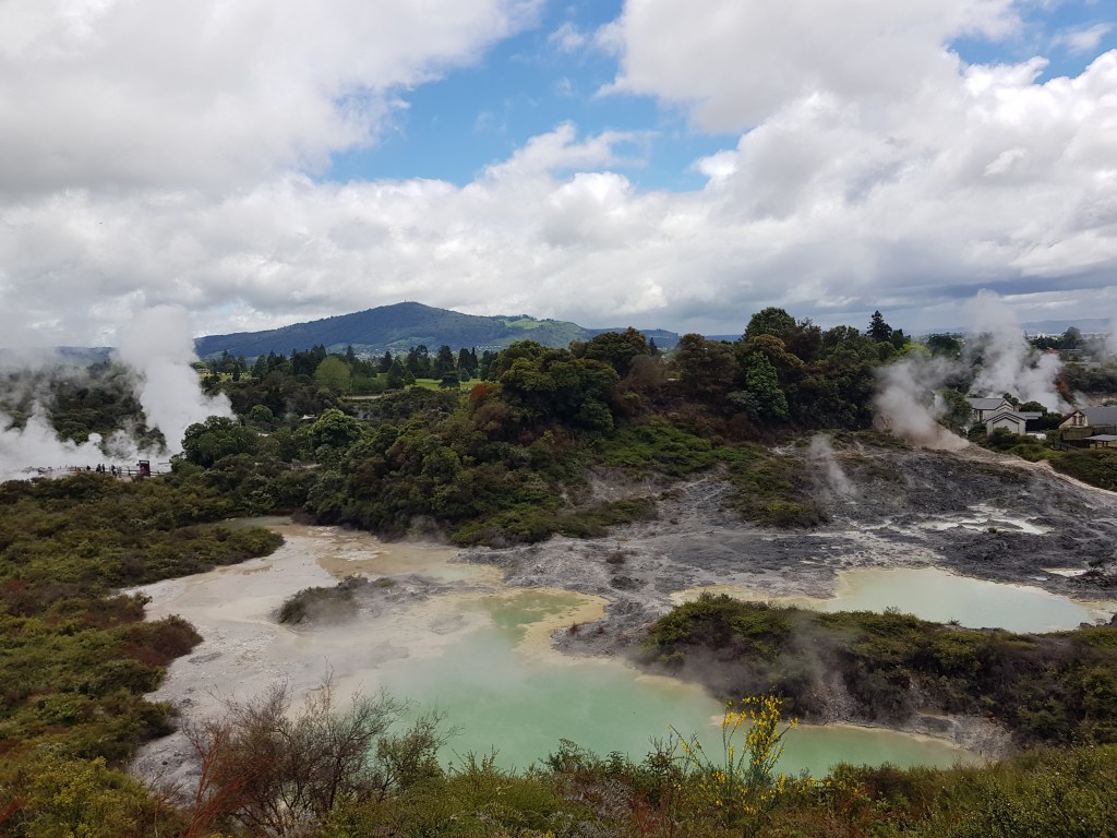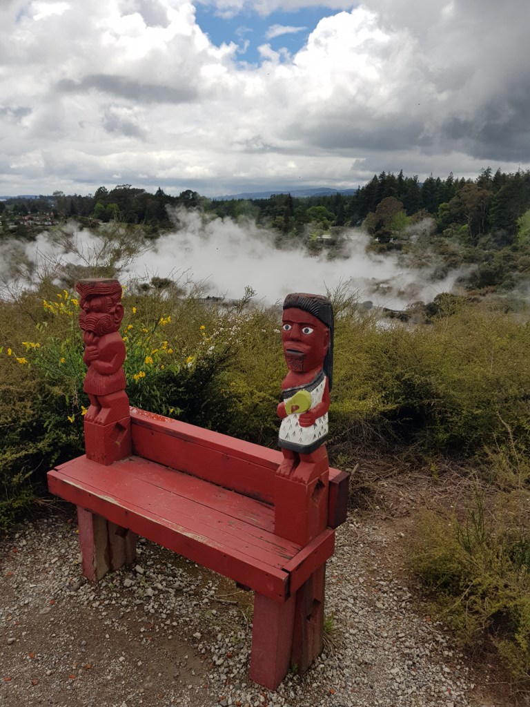 Petit retour en arrière chronologique : nous avons fait un passage par Rotorua juste avant de commencer notre travail dans les vergers. Rotorua est une destination touristique de l’île du Nord par l’importance de la culture maorie ainsi que la présence de sites géothermiques impressionnants. Ces même sites donnent à la ville une forte odeur de soufre.