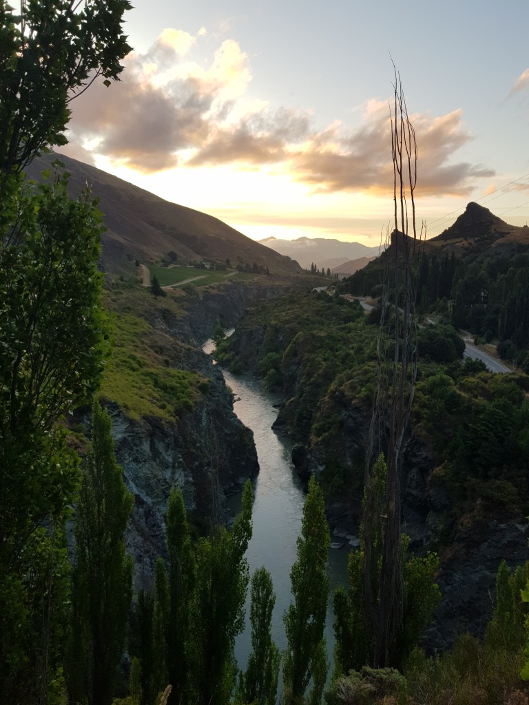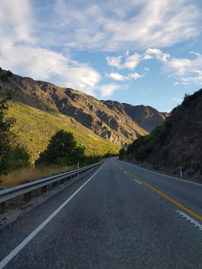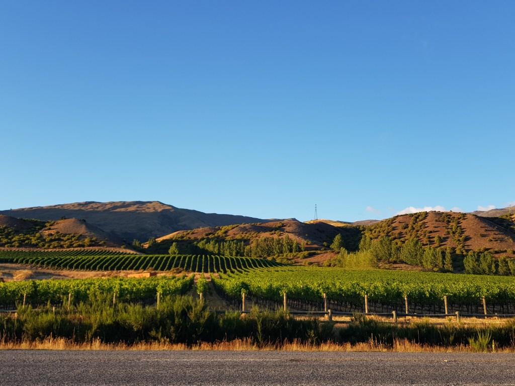 Par la route, nous avons parcouru les alentours de Queenstown : à l’Est la Gibbston Valley avec ses vignes longeant la rivière Kawarau.