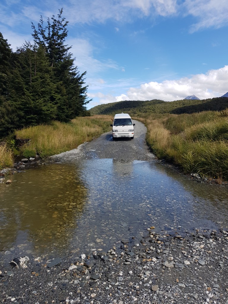 Et au Nord le village de Glenorchy. Pour y parvenir nous empruntons une route splendide qui longe le lac Wakatipu et mène jusqu’au Paradis ! A condition que le van passe les cours d’eau …