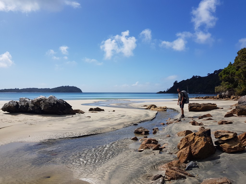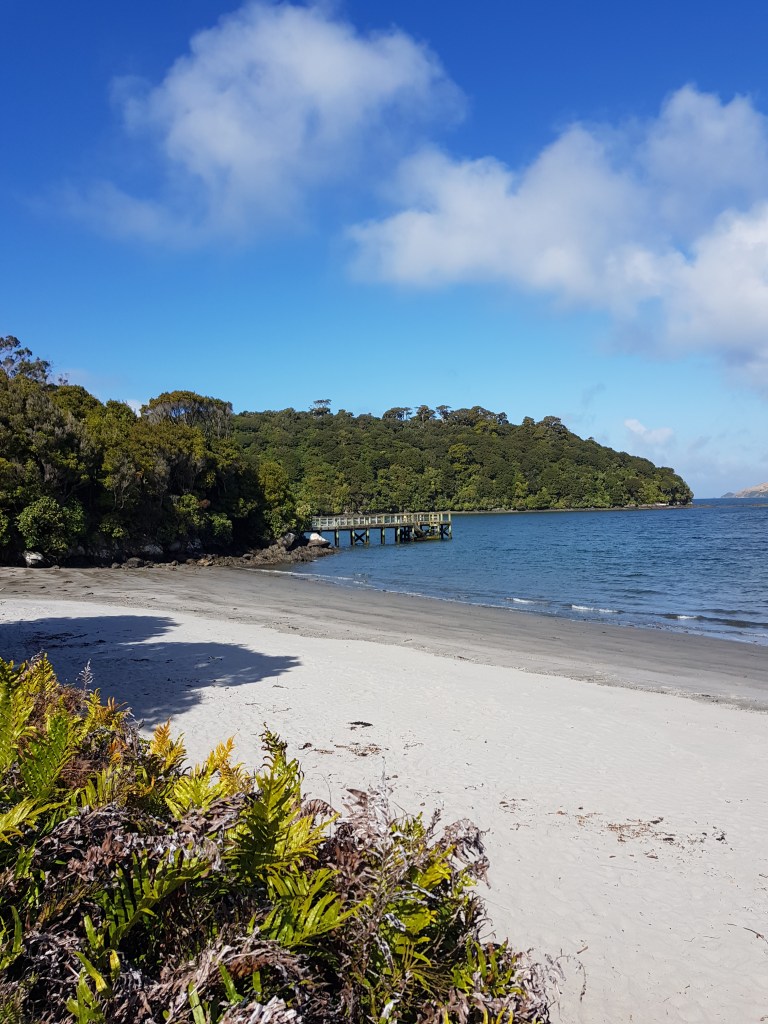 La première étape au départ d’Oban nous fait rejoindre Lee Bay et sa plage principale près de laquelle se trouve la sculpture « The Anchor Stone ». Une sculpture jumelle se trouve à Bluff et elles symbolisent le lien entre Stewart Island et l’île du Sud. Nous longeons ensuite la côte en passant par Maori Beach et Magnetic Beach où se trouve notre campsite pour la nuit.