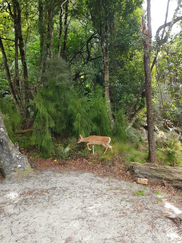 A notre arrivée un faon nous acceuille à notre emplacement.