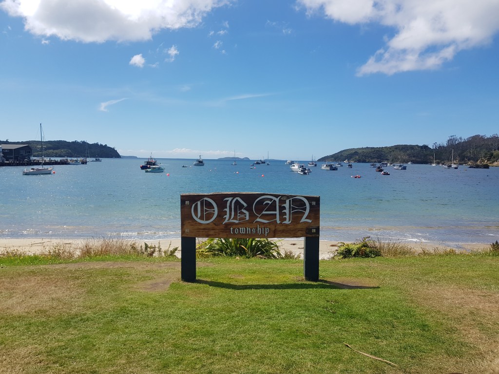Stewart Island se visite principalement à pied, c’est pourquoi nous abandonnons notre van à Bluff et ne partons qu’avec notre sac à dos. Après 1 petite heure de bateau, nous arrivons à Oban, seule ville de l’île. Un petit supermarché, un café-hôtel-restaurant et un fish’n chips : on fait vite le tour de cette charmante petite bourgade au bord de l’eau.