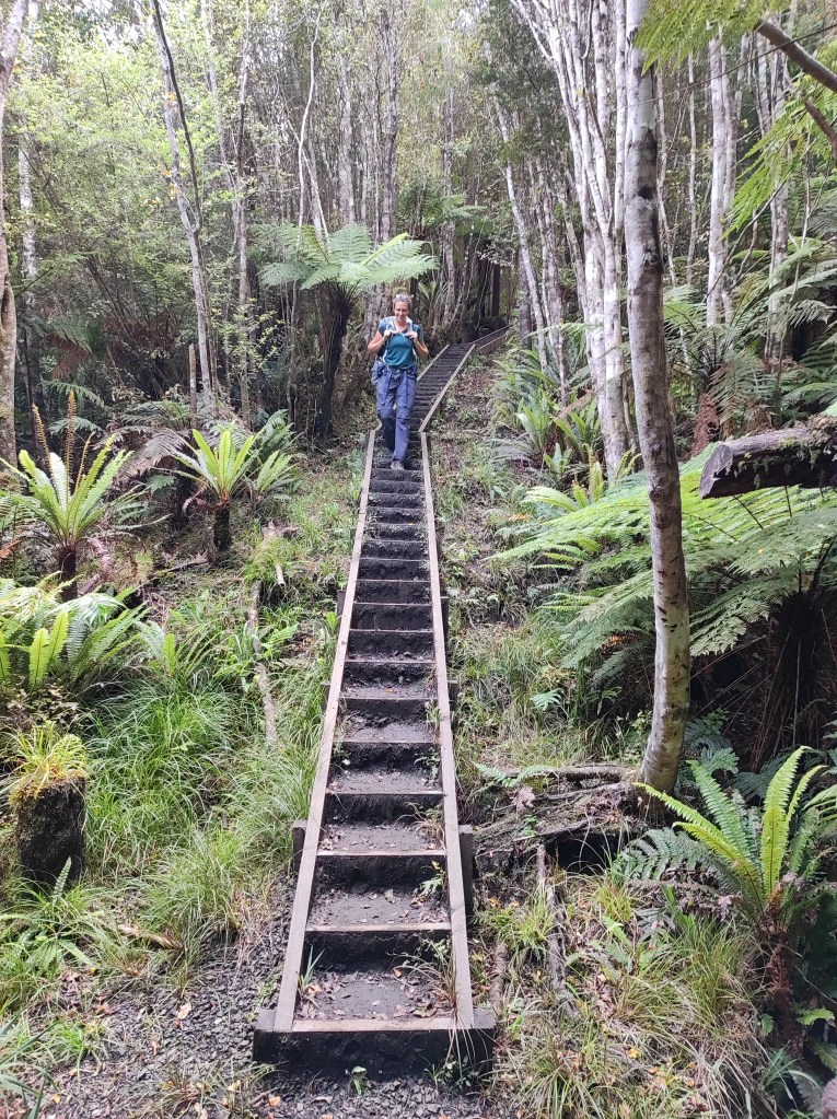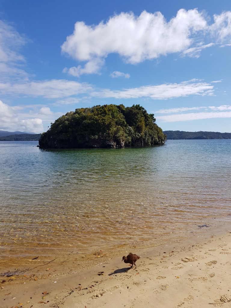 Outre la découverte des paysages de l’île, le point d’intérêt majeur de cette rando était l’observation des kiwis. Cet animal nocturne est très timide, il nous a fallu être patients et discrets… pour avoir la chance d’en voir 2 ! Que nous avons pu observer de nuit, à la lumière rouge. Pas de photo donc mais des images plein la tête de la rencontre avec ce petit animal.