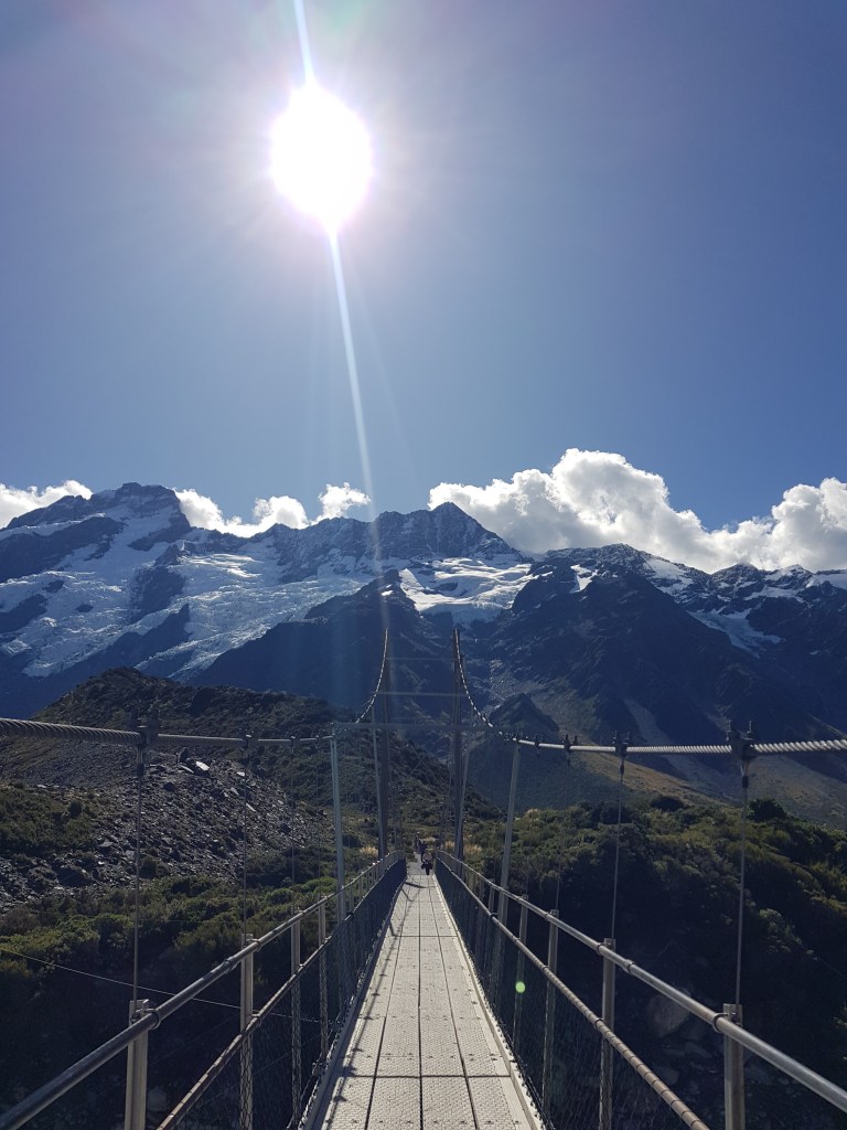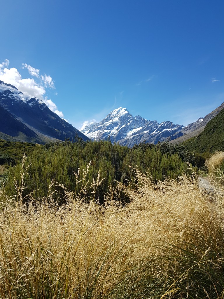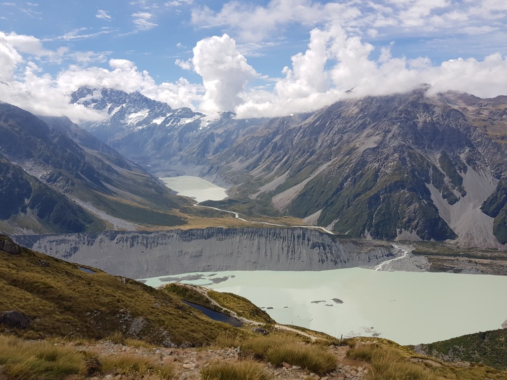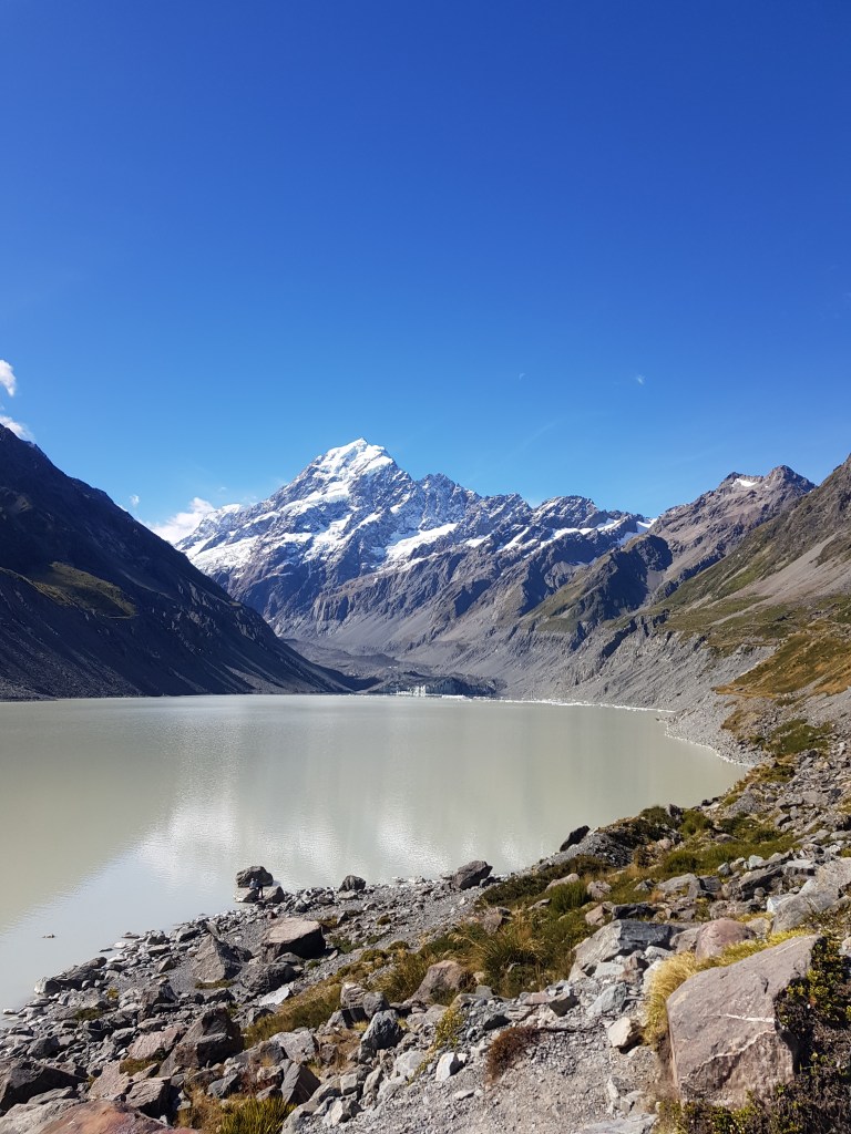Puis nous partons voir le Mont Cook de plus près avec deux belles marches : Hooker Valley Track et Sealy Tarns Track.