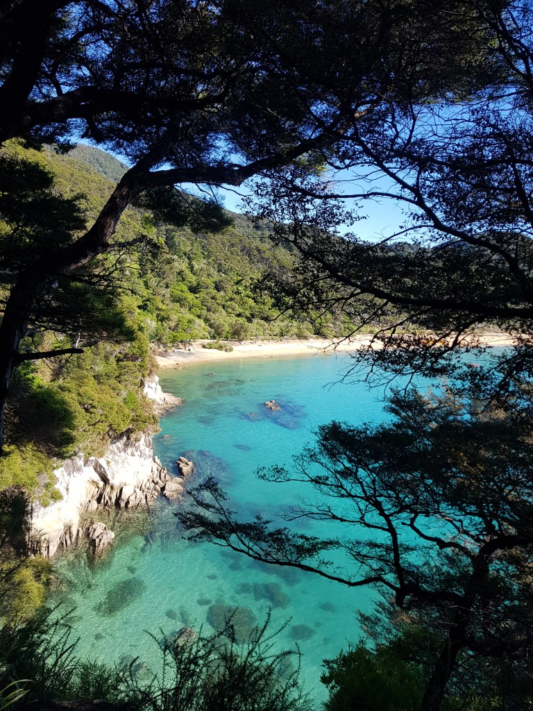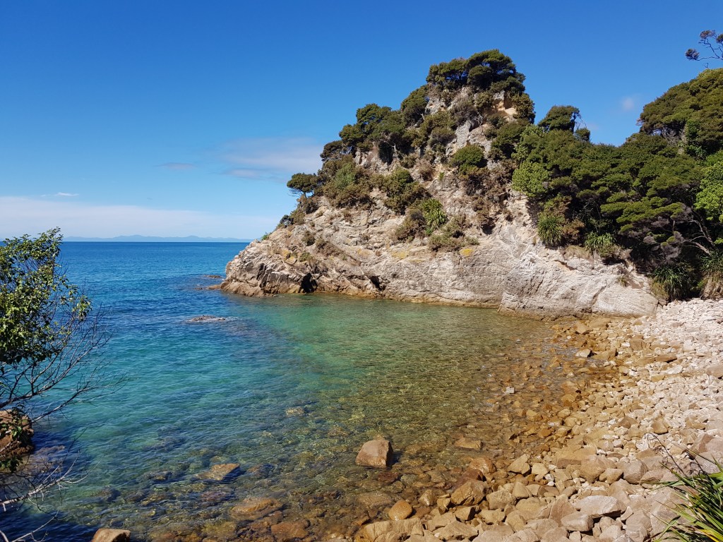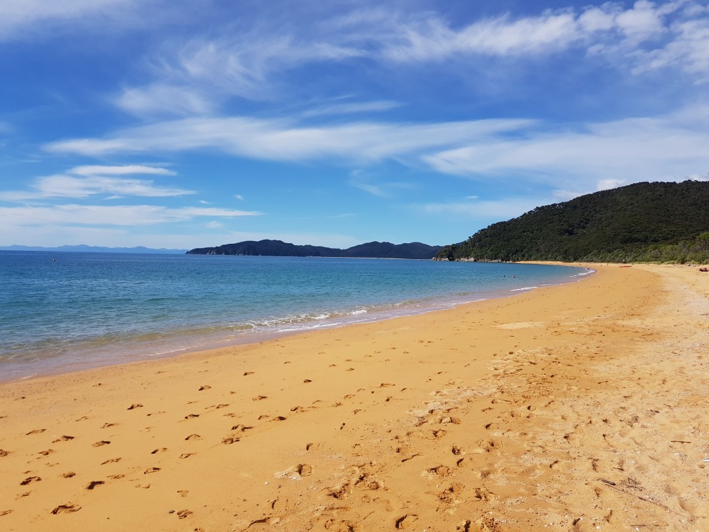 Après ces 2 semaines de boulot, nous décidons de randonner 2 jours sur la partie nord de la Great Walk Abel Tasman, que nous n’avions pas faite la première fois. Cette portion forme une boucle au départ de Wainui Bay et nous fait encore passer par de jolies plages.