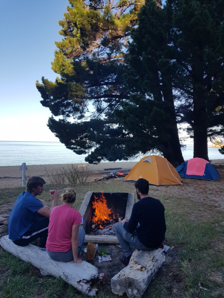 Faute d’un camping décent fourni par notre employeur, pendant cette période nous prenons nos habitudes à la douche de plage et dormons en freecamp (Alexander Bluff & Motueka Beach). Pour le confort on repassera, mais la convivialité et les bonnes soirées arrosées sont là !