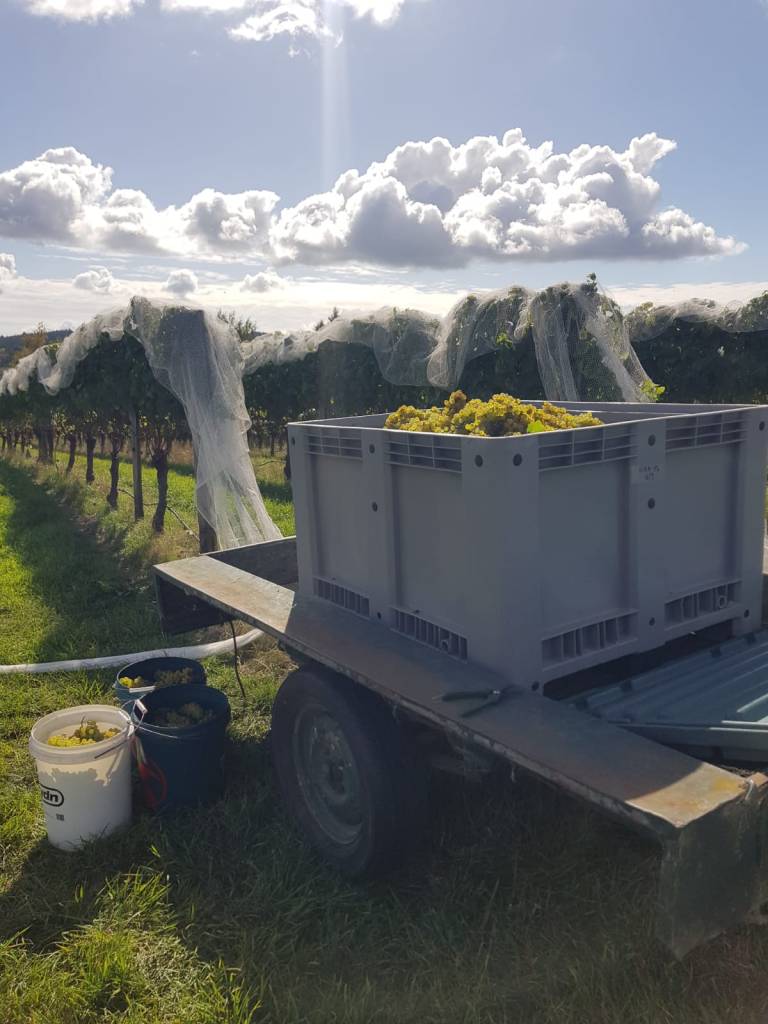 Nous avons aussi fait 2 jours de cueillette de raisin pour le petit vignoble « Moutere Hills » et avons passé une soirée dans le bar du patron, le Fox N Grapes !