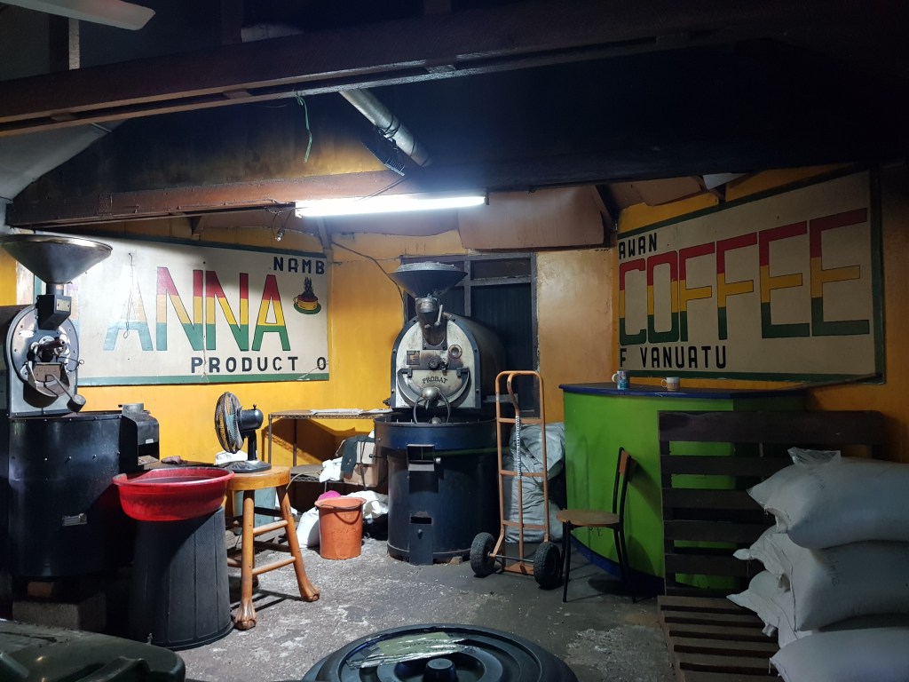 Avant l’arrivée du cyclone, on sent que l’île se prépare au pire. On boit un verre au Beach bar dans une ambiance très particulière : le staff est en train de démonter ! Au Tanna Coffee, même constat : le lieu est désert, et on se prépare à fermer.