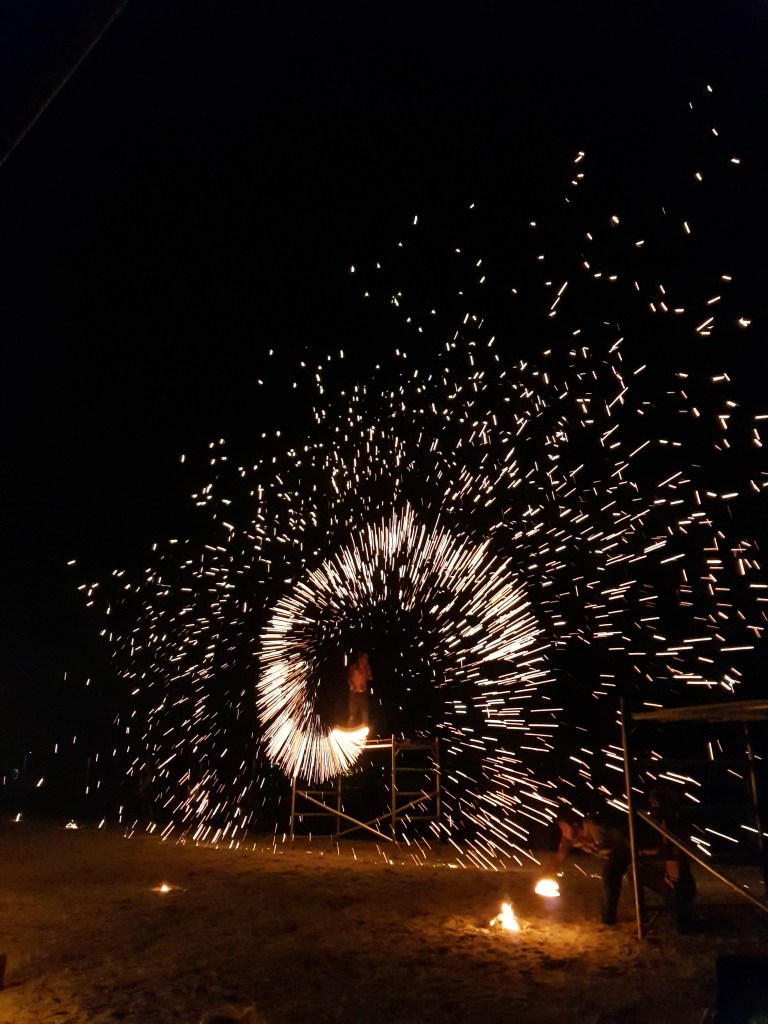 Après 2 jours à se balader dans Port-Vila sous la grisaille post-cyclone, nous profitons d’une journée de beau temps pour faire le tour de l’île. Nous découvrons ainsi le village de Pepeyo, et le Blue Lagoon, avant de terminer avec un spectacle de feu sur la plage.