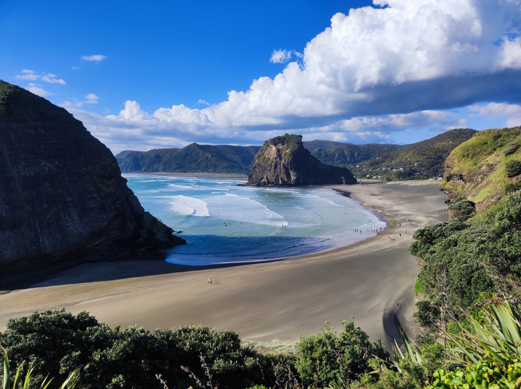 Piha offre une magnifique plage de sable noir et est un spot très prisé par les surfeurs.
